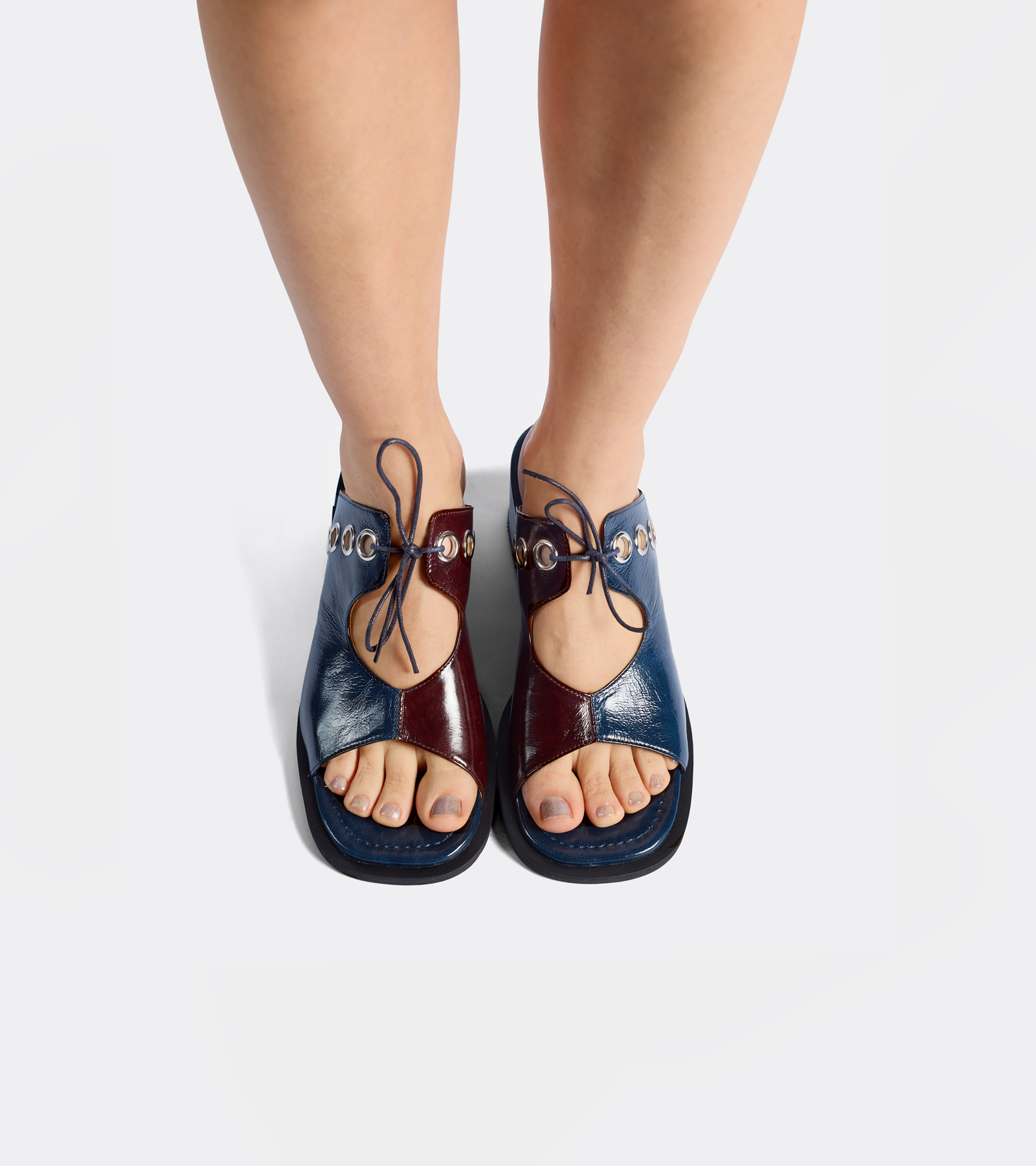 Sandalia en bloques bicolor o color entero con planta cuadrada definida.