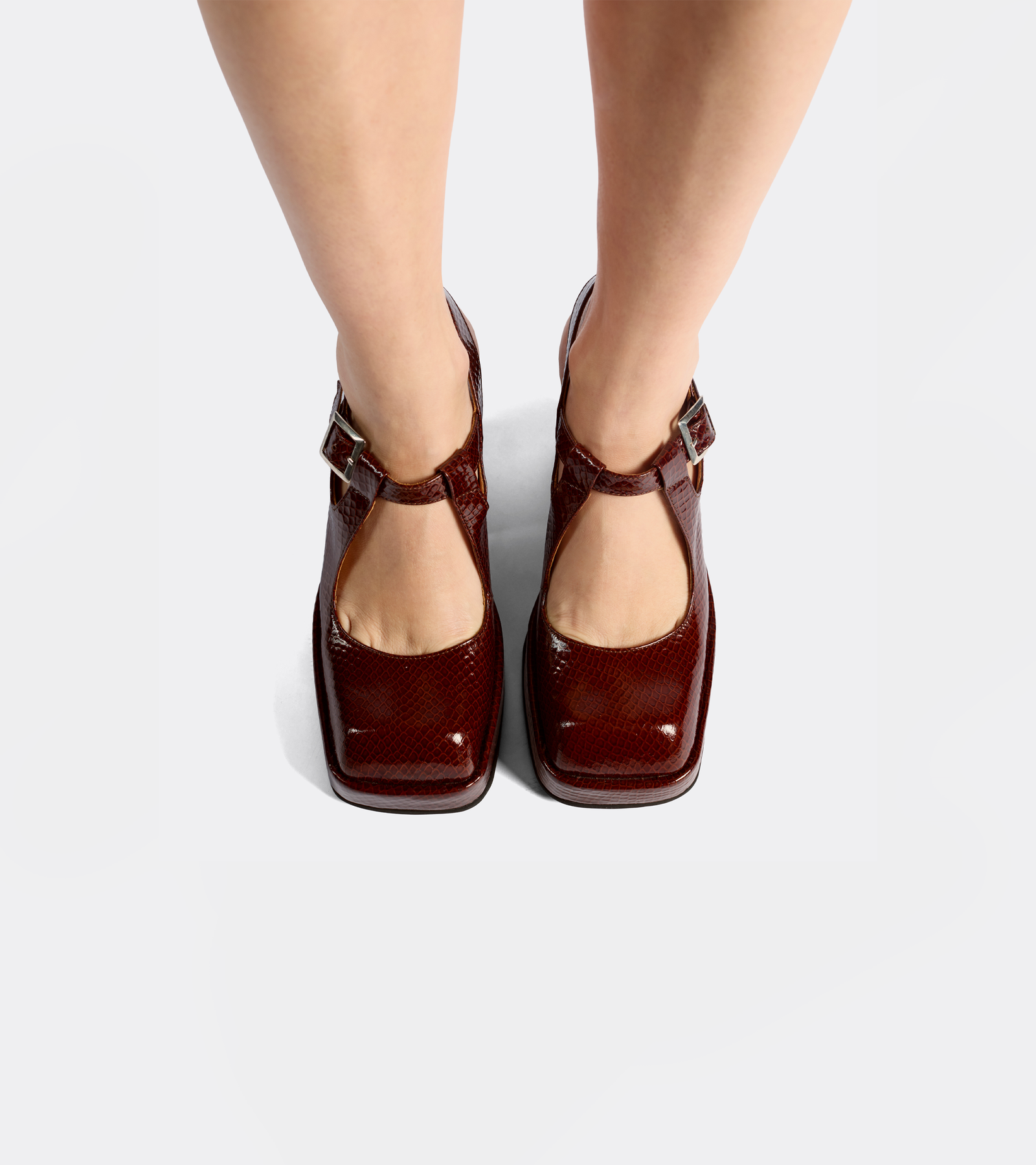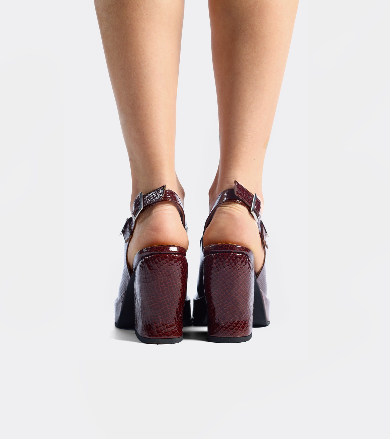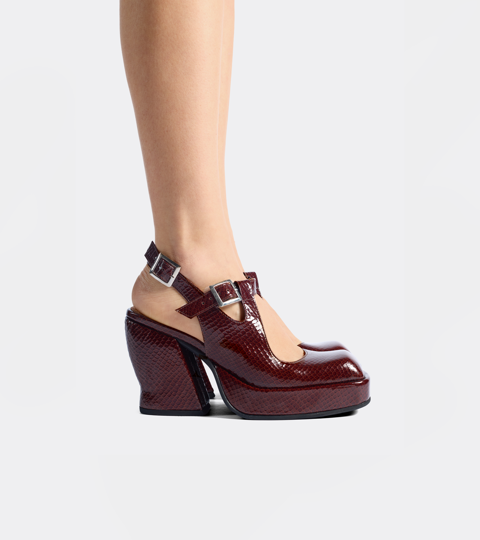 Zapato croco guinda de forma compacta y perfil marcado.