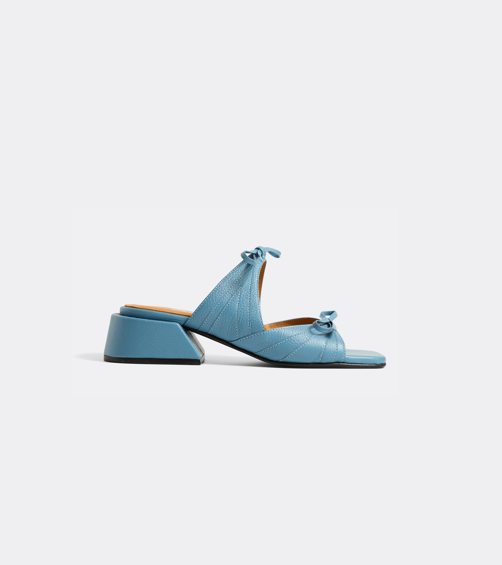 Sandalias con dos lazos y costuras de adorno.