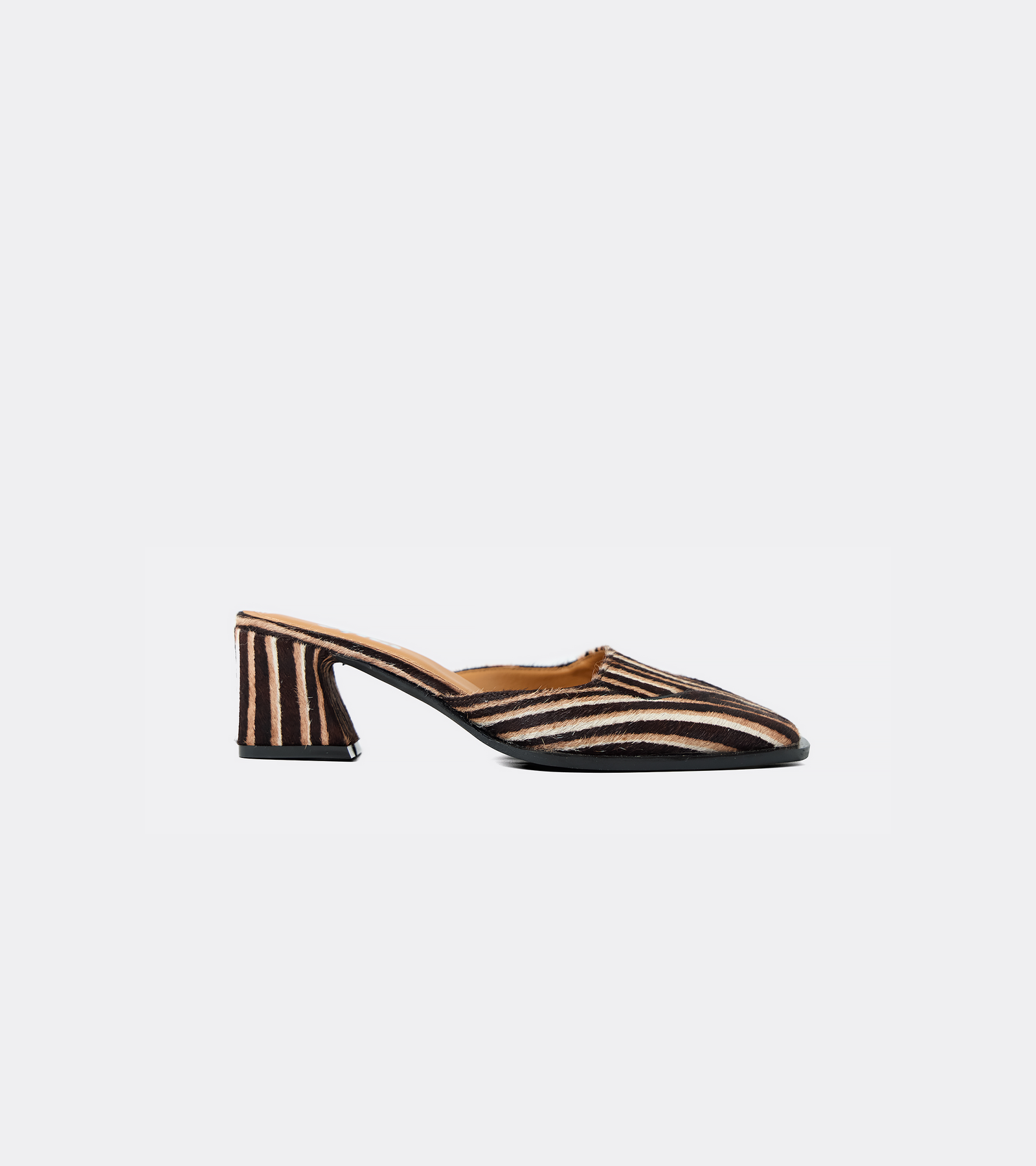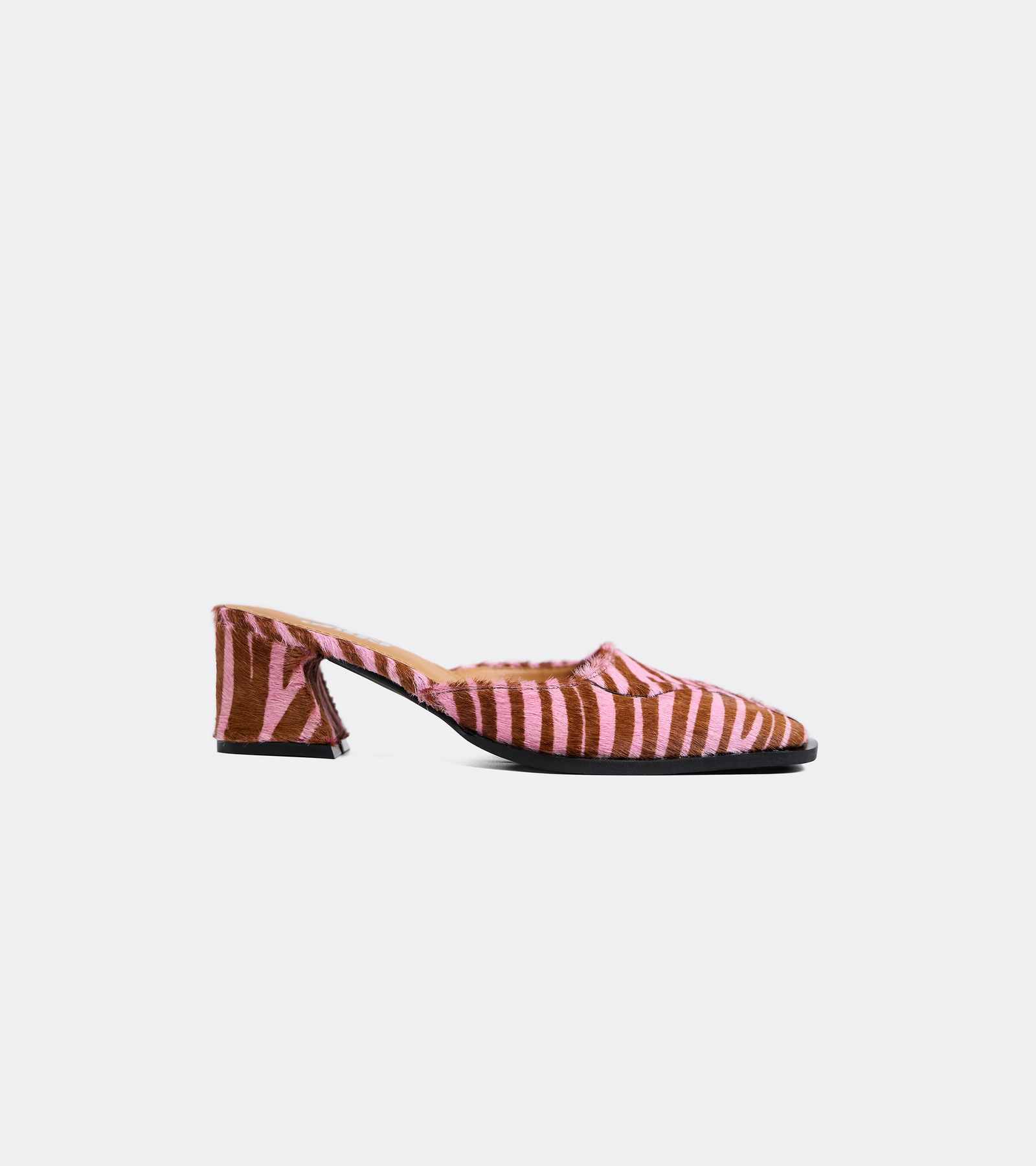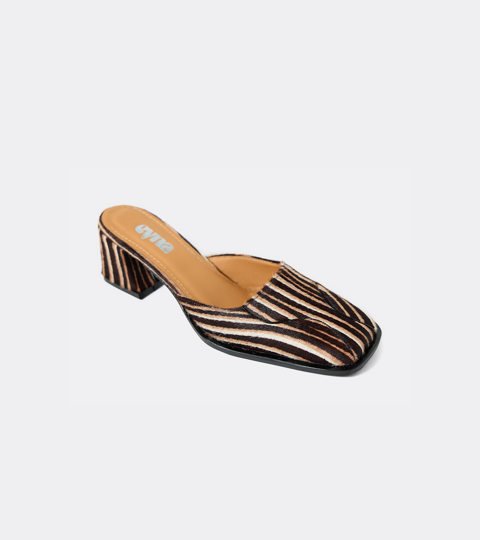 Punta cuadrada marcada con aplicaciones de cuero. Hechos con cuero de pelo.